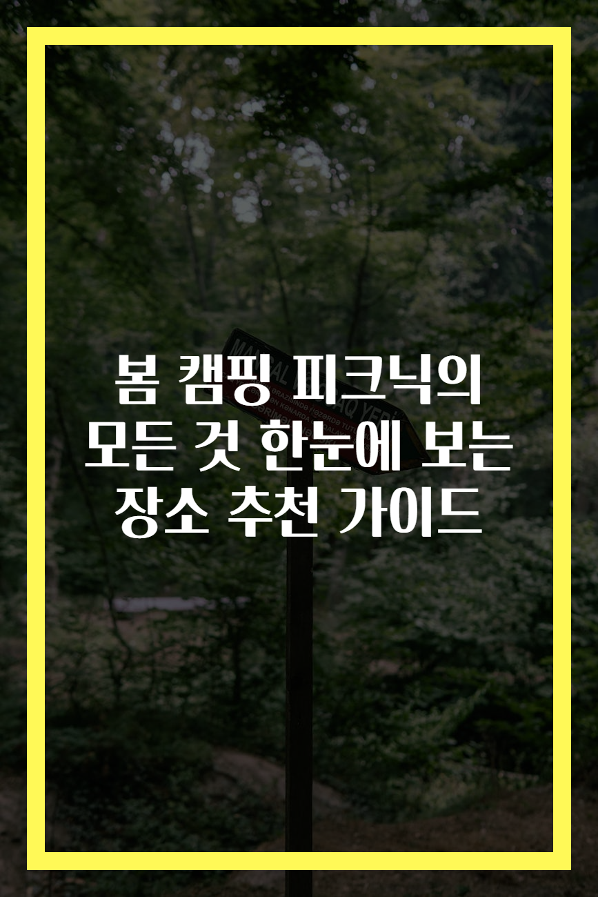 메타 설명: 봄철 캠핑과 피크닉을 위한 최적의 장소 추천. 아름다운 자연과 함께 즐거운 시간을 만끽하세요!