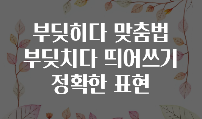 #부딪히다 #부딪치다 #맞춤법 #띄어쓰기 #국립국어원 #한국어맞춤법 #언어생활 #글쓰기팁 #맞춤법꿀팁